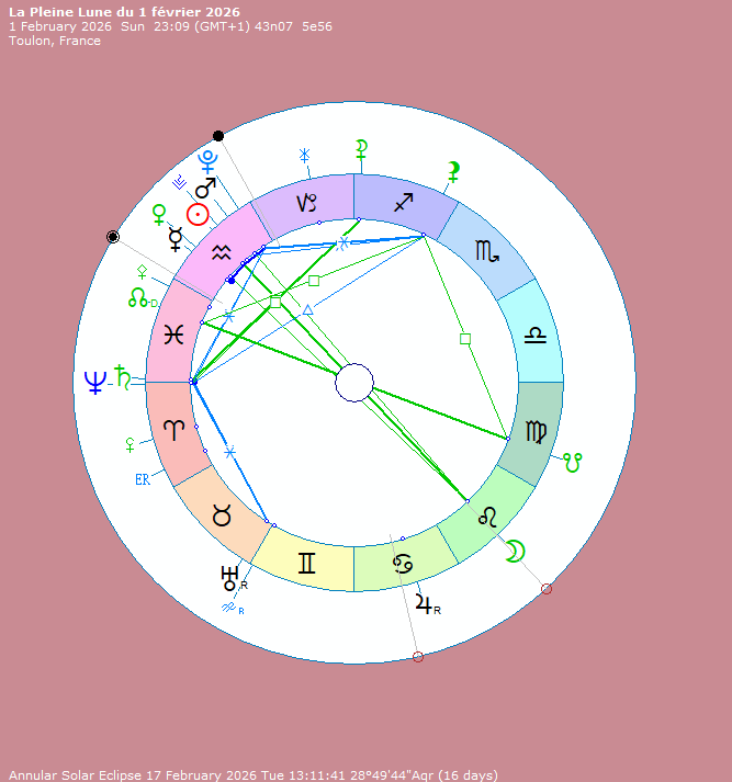Pour cette Pleine Lune du 1er février 2026, la concentration d’énergie dans le processus qui nous sensibilise aux pensées et aux idées collectives est exceptionnellement forte. Ce n’est pas une configuration très durable, mais elle affecte directement et fortement les formes de conscience qui nous font fonctionner au quotidien. Le mental est stimulé par cela si bien que nous pouvons facilement émettre des pensées de partage et de solidarité ou de partage, Notre esprit pense aux autres plus facilement. Notre conscience de la sensorialité trouvera du plaisir à partager et à vivre dans une ambiance solidaire et collective. Notre vitalité est également augmentée par les énergies collectives et solidaires dans notre manière de vivre. Nous avons en nous le désir de participer ou de réinventer pour le meilleur une façon d’être plus équitable, plus partageuse et solidaire.
