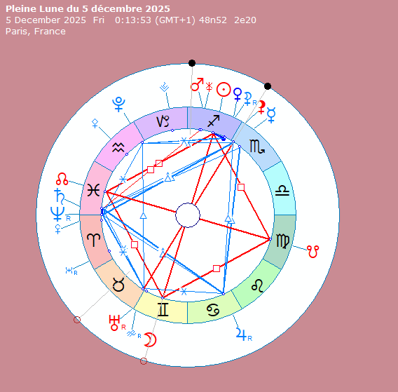 C’est aujourd’hui la Pleine Lune en Gémeaux du 5 décembre 2025. L’énergie d’action et de détermination est forte, de même que celle de la reliance, qui nous rend perméables à de nombreuses connexions impalpables. Dans cette ambiance, nous avons une partie à jouer pour nous projeter vers l’avenir, mais avec une certaine gaieté malgré les difficultés certaines.